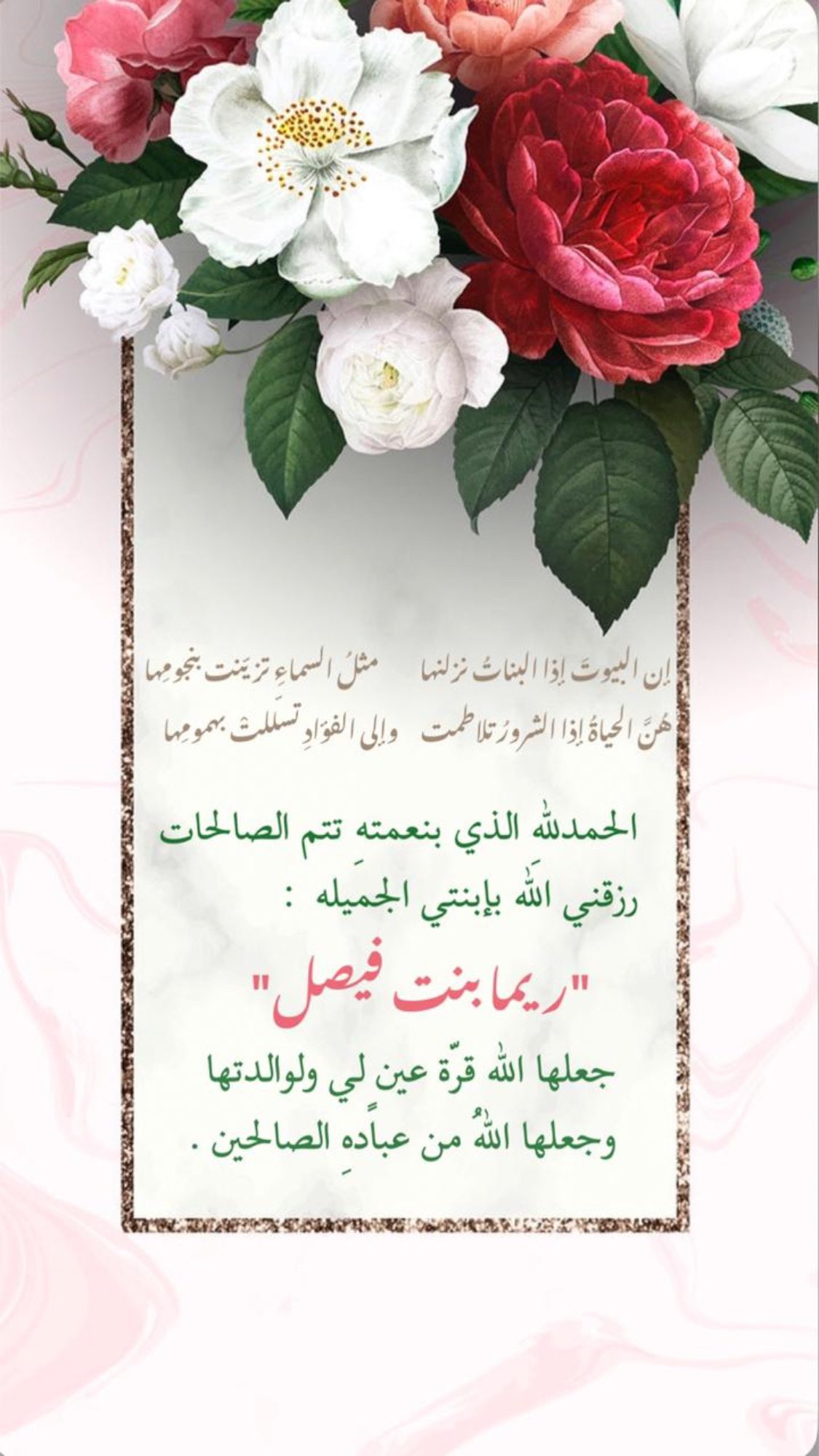ғaiƨaℓ Amanti Del Profumo A Twitter الحمد لله الذي بنعمته تتم الصالحات رزقني الله بمولوده اسميتها ريما و نسأل الله أن يصلح لنا ولكم النية والذرية Https T Co 33anzscoli