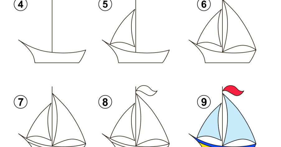 رسم سفينة شراعية سهلة خطوة بخطوة