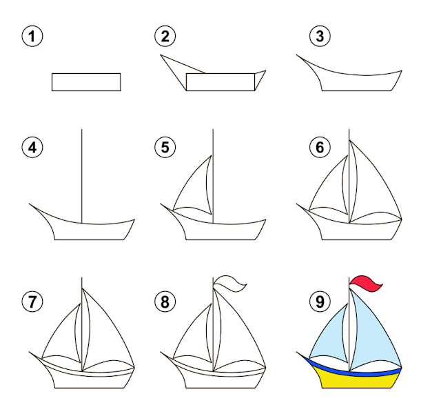 رسم سفينة شراعية سهلة خطوة بخطوة